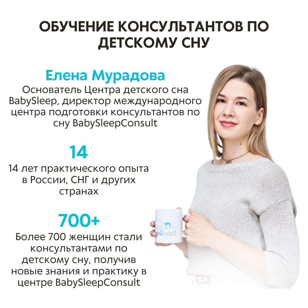 В BabySleepConsult создана дистанционная трёхмодульная онлайн-программа, соединившая мировой и российский опыт исследований в области доказательной медицины сна, многолетнюю (с 2011 г.) практику консультантов BabySleep, авторские методики и опыт первого консультанта по детскому сну в России и СНГ Елены Мурадовой.